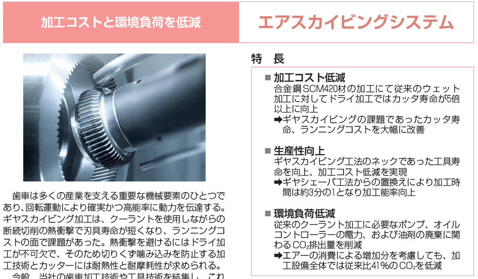 りギヤスカイビングのドライ加工を実現し刃具寿命を大