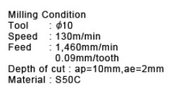 • Well-balanced sharpness and rigidity realize high efficient and high precision milling for vertical walls.
