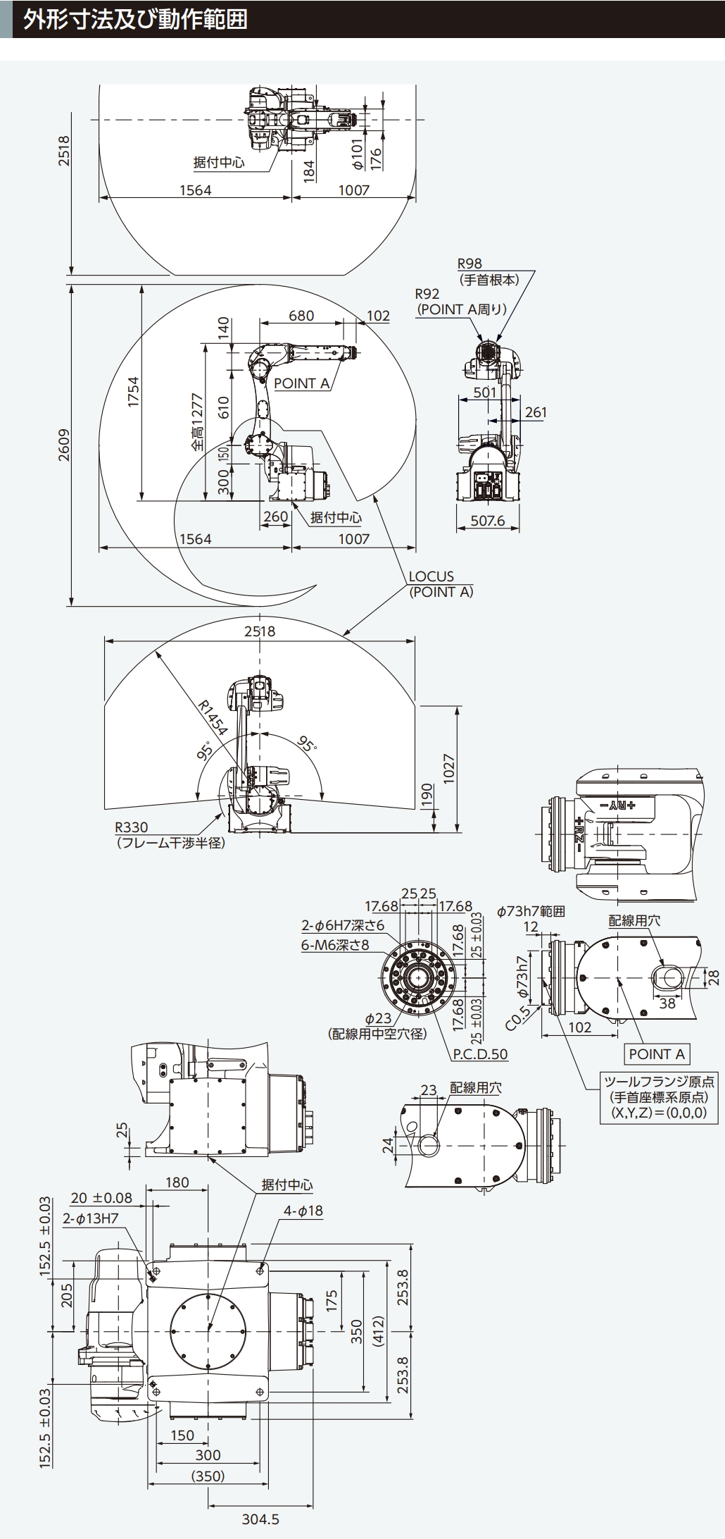 *1: 表内の最大速度は最大値であり、作業プログラムや手首負荷条件によって変化します。