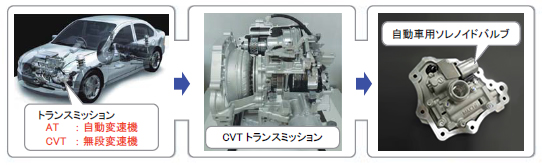 自動車の自動変速機(AT、CVT)に用いられ、変速のクラッチ圧力やライン圧力等を油圧制御することで、スムーズで快適なドライビングを楽しむことができます。