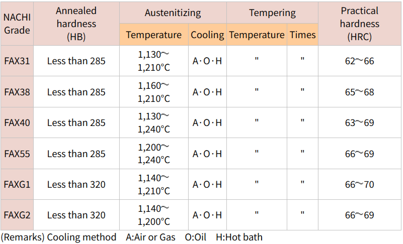• Stable performance that certain grindability and less deformation after heat treatment