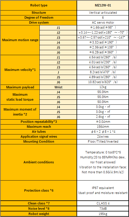 *8:Robot noise is A-weighted equivalent sound level measured under" JIS Z 8737-1" (ISO 11201) with maximum payload and maximum velocity.