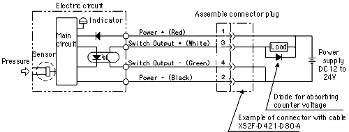 Note : When connecting a compact relay, make sure to connect counter voltage absorption element (diode) parallel to load.