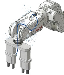 中空手首を通したハンド配線引き回しで、周辺設備との干渉を回避。
