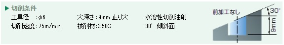 • 耐熱性・耐摩耗性に優れた当社独自の「アクアEXコーティング」により、傾斜面・曲面での加工では、他社のコーティングフラットドリルと比較して、約2倍の工具寿命を実現