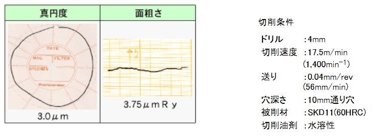 • 50~70HRCの高硬度鋼の高能率加工が可能